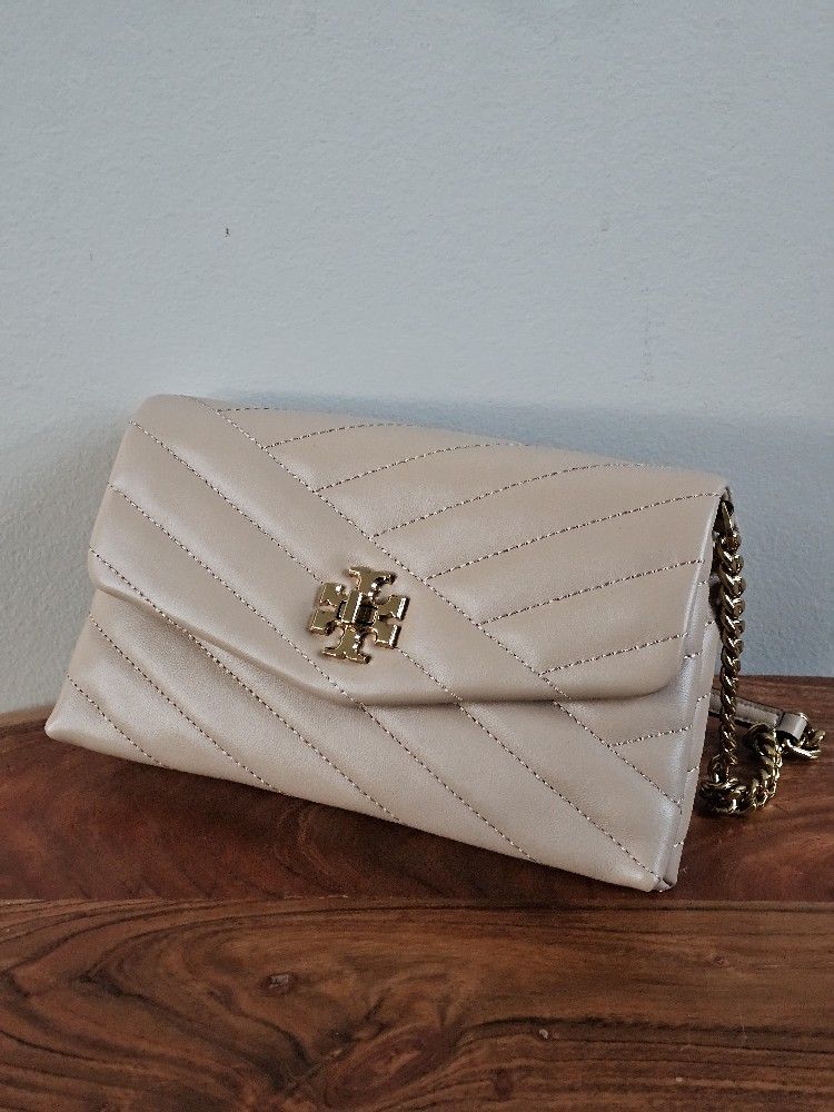 Tory Burch brand Cross body wallet bag Purse: 5 in height 8.5 in length 2 in depth Cross body strap: 48 in length 27 in from shoulder to end of purse Brand new with tags