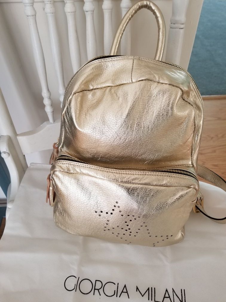 Gorgeous gold leather backpack Made in Italy by designer Giorgia Milani Brand New with tags Includes white dust bag as seen in first picture