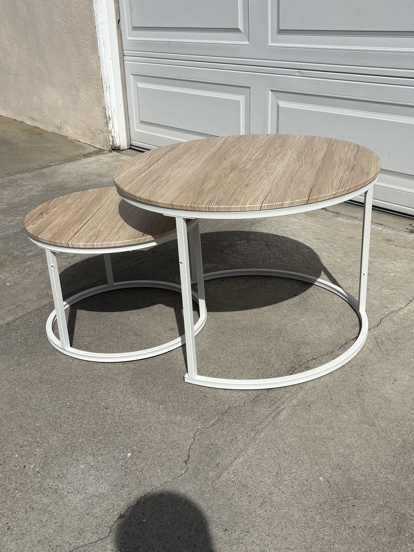 Set of 2 white oak coffee tables. Never used. Dimensions are in the picture.