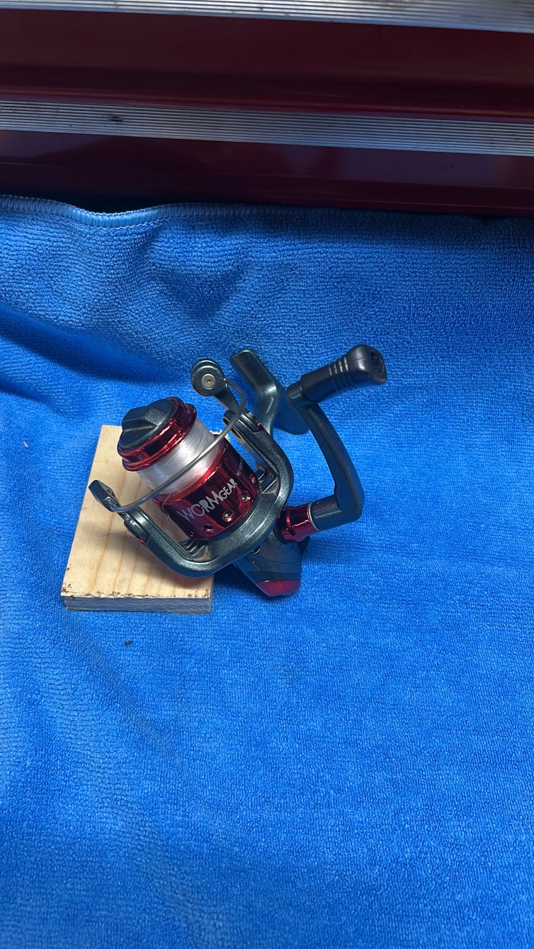 2 fishing reels perfect for trout One has fishing line 6 lbs and other is empty. One is used the other is new (red)