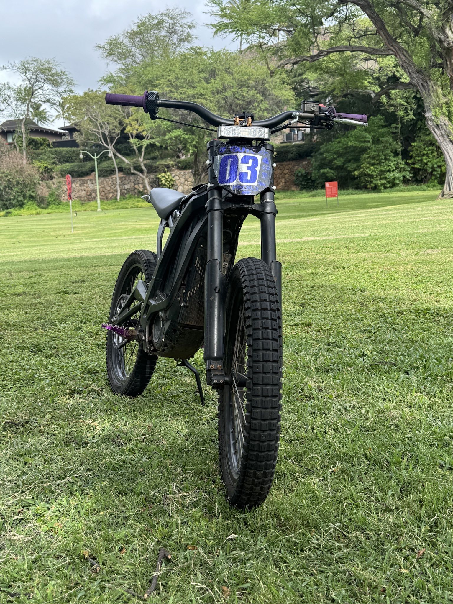 surron 2023 lbx 550 miles $450 new battery connectors job just replaced 2 weeks ago Ultra bee brake in the rear Brand new throttle Brand new warp 9 purple 54t sprocket New chain for rk racing Shinkos in the rear and front 17 inches Little scratches up but really good for wheelies, offroading and road riding Odi grips Warp 9 purple pegs Looking for crash or trade for another emoto