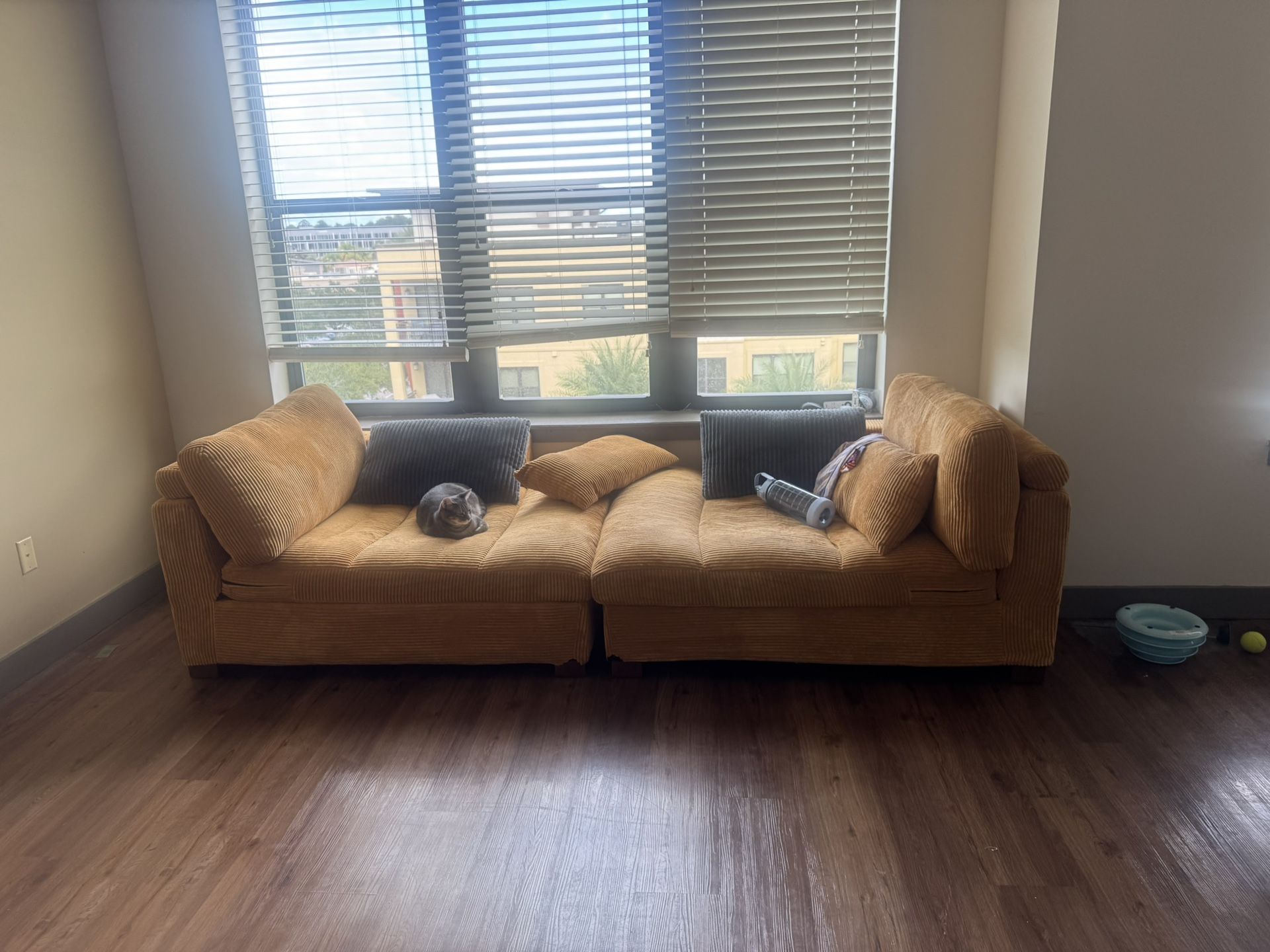 Orange Corduroy 2 Piece Couch