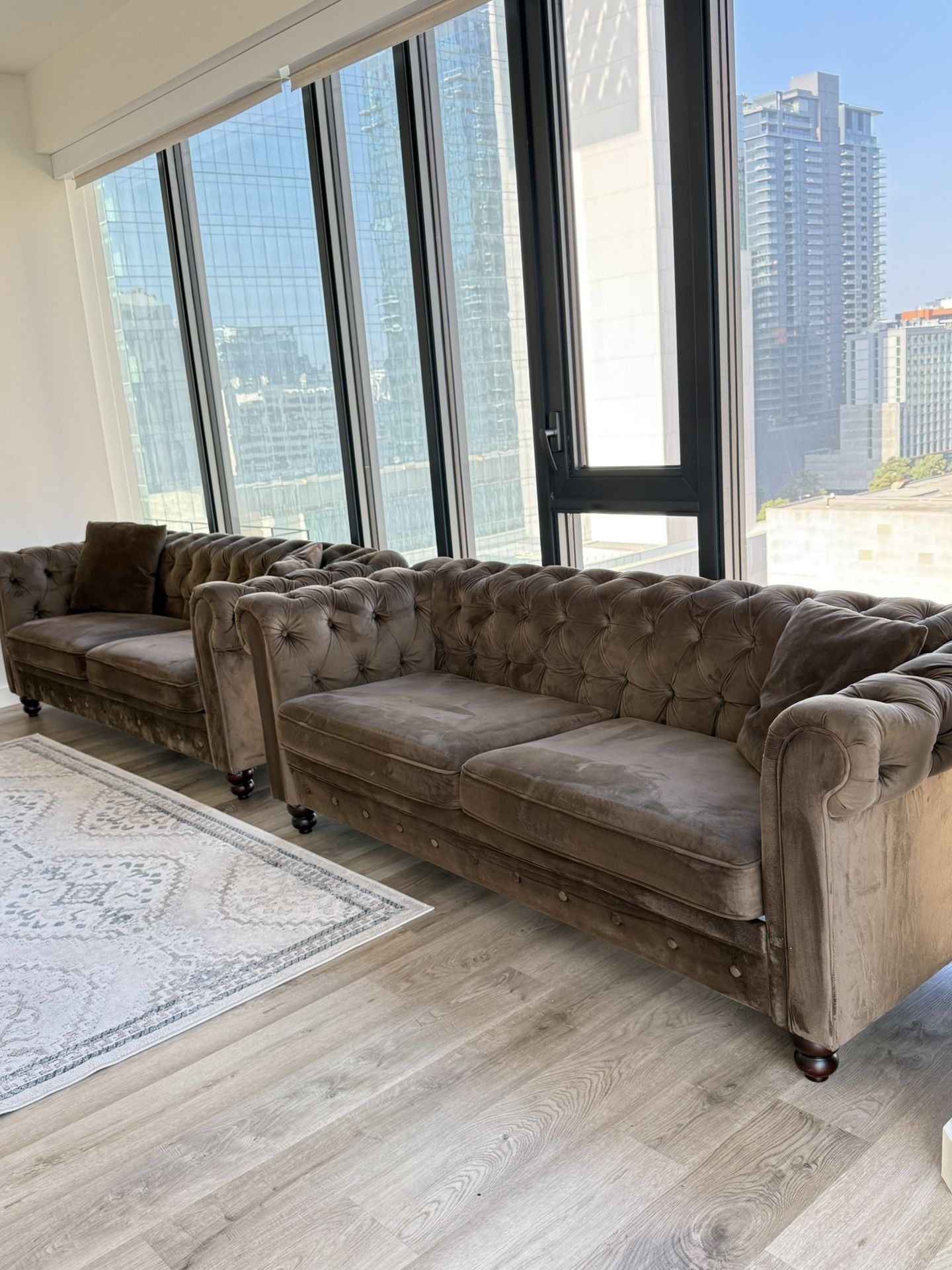Modern and comfortable sofa set for sale. I am selling both pieces together for $800. I am not selling them separately, as I need them gone as soon as possible. The original cost was $1,200, so this is already priced very low. I may consider a reasonable offer from a serious buyer. Low offers will be ignored. Serious inquiries only. Thank you.