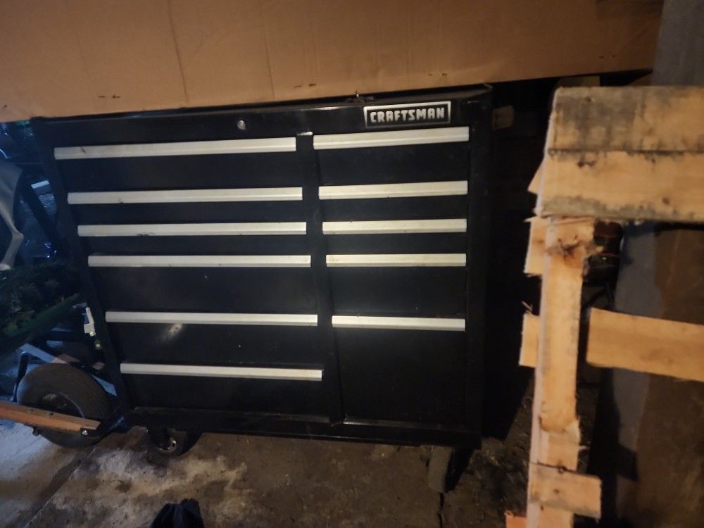 Tool box on wheels comes with plenty of tools inside been sitting in the basement