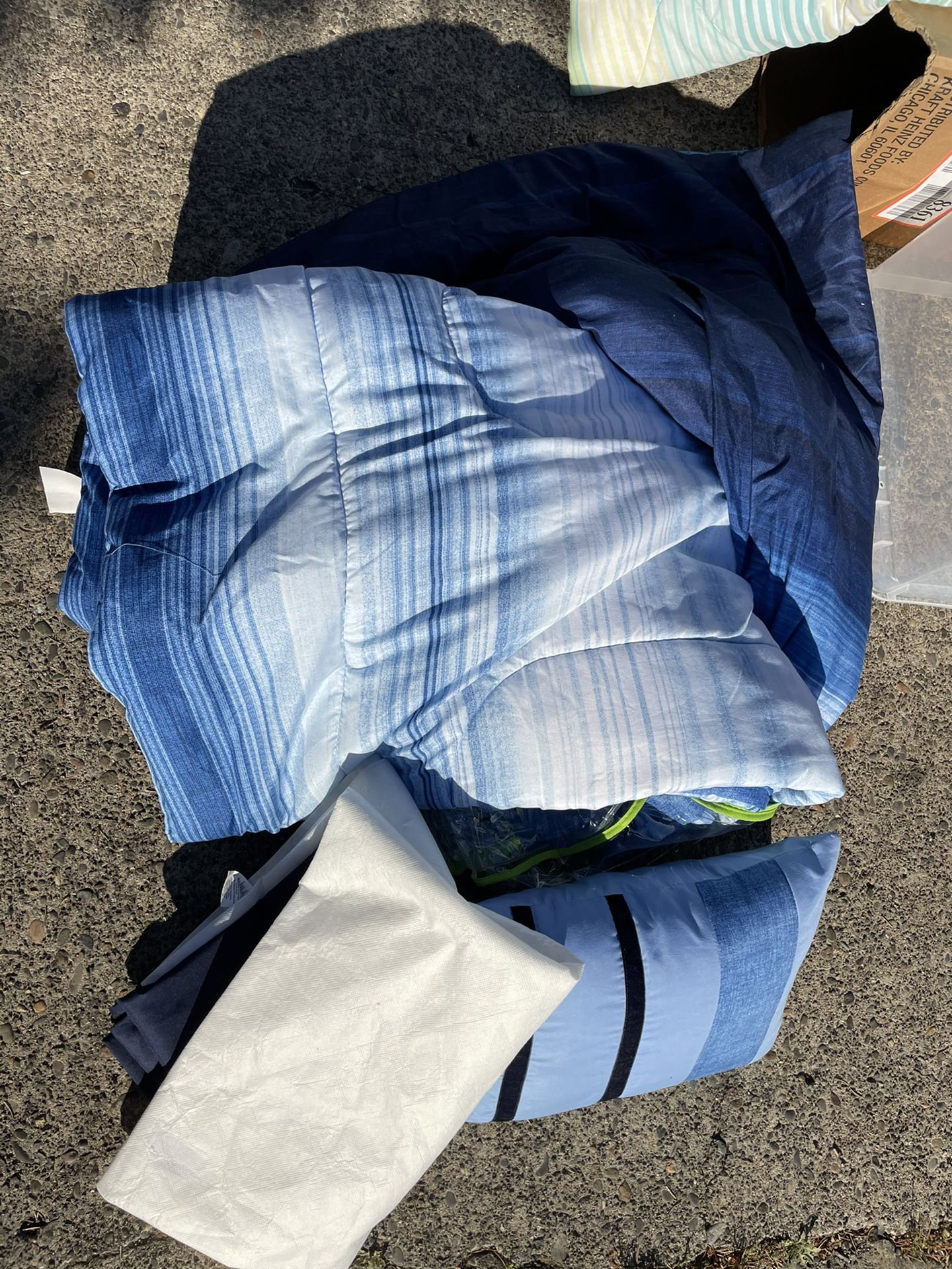 Mainstays Ombre Stripe Microfiber Reversible , lightweight , with bed skirt and small pillow. Bed-in-a-Bag #queenBed #comforter #blue