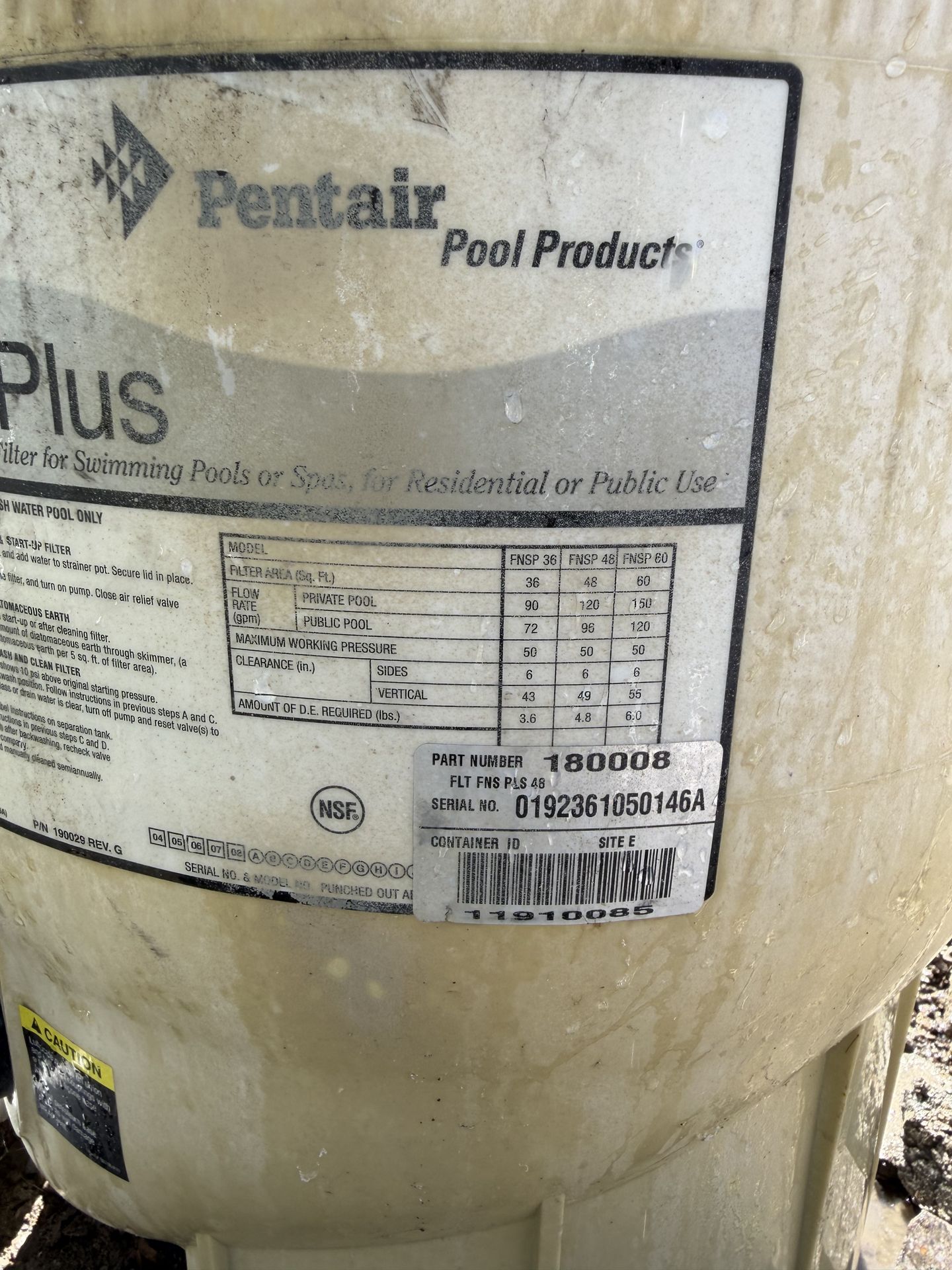 Selling a Pentair FNS Plus DE (Diatomaceous Earth) pool filter. • Condition: used, works well • No leaks, fully functional • DE filter provides superior water clarity (filters finer than cartridge/sand) • Great for residential pools or spas Normal cosmetic wear from use (see photos), but performance is still solid. 🚫 No return / No exchange 📍 Pick up in Fountain Valley