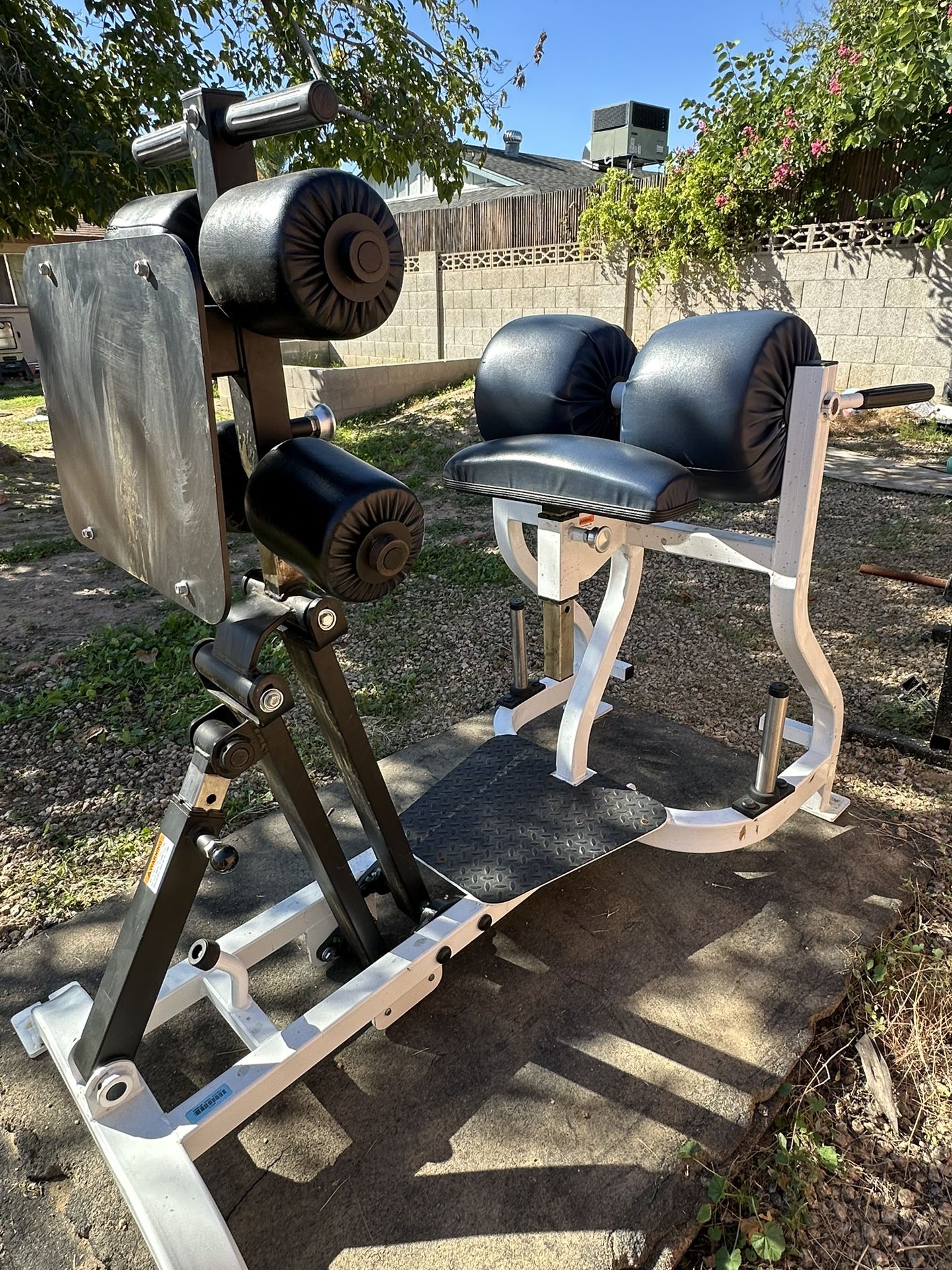 Pro Maxima Commercial GHD (Glute Ham Developer) Machine. This is a true commercial machine designed for gyms, not a cheap residential until. Retails new from $2100-2700 before tax and shipping. Super heavy duty. Three way adjustable (horizontal & vertical foot plate adjustments and vertical adjustment for knee pad). Band pegs and weight horns for adding resistance. Perform Nordic curls, back extensions, sit ups, reverse hyper extension (with use of a band), etc. Only limited by your imagination. Pick up only near McDonald and the 101 in South Scottsdale. Bring a friend and a truck. It's large and heavy. Like my former mother in law.