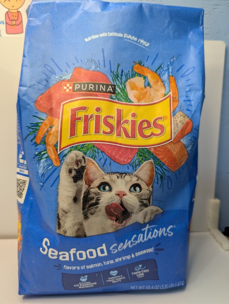 This listing is for the exact product that you see in the pictures. The bag of Purina Friskies is factory sealed and came straight from the store. I enjoy couponing so I have a few of these around. Each one of these cost around $5.24 at Walmart, I'm asking $3 since I only have 1 bag for this flavor. - 1, 3.15 LBs bag of Purina Friskies Seafood Sensations Dry Cat Food Flavors of Salmon, Tuna, Shrimp and Seaweed, 3.15 lb. Bag - Expiration: June 2027 Cash only please!
