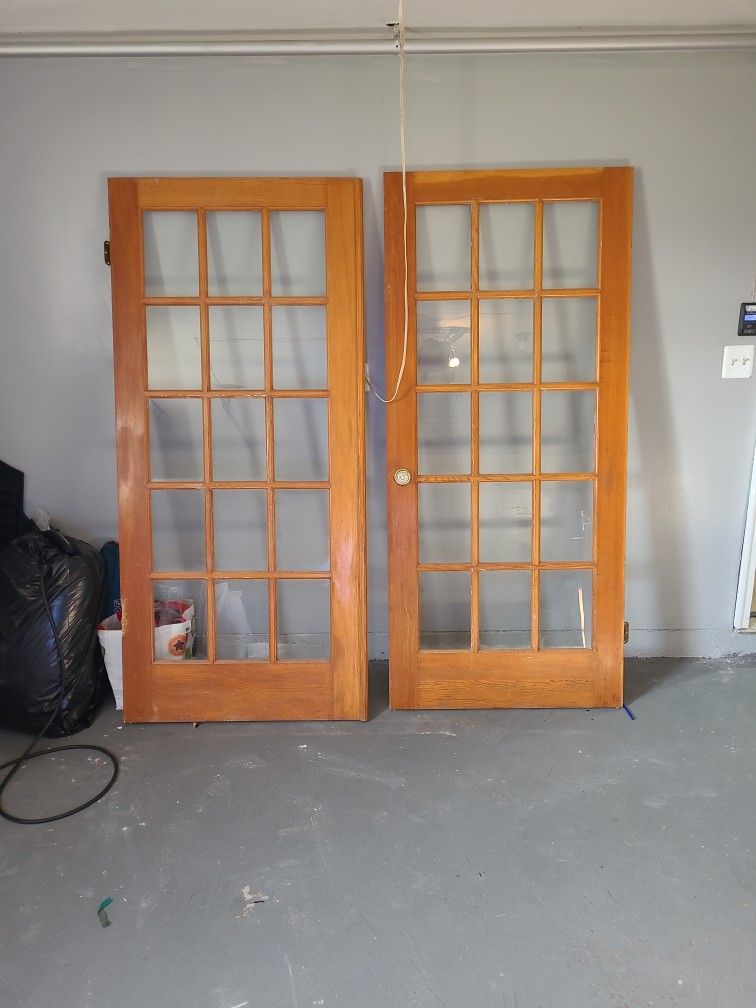 Used but very solid wood doors Little damaged fixable see pic