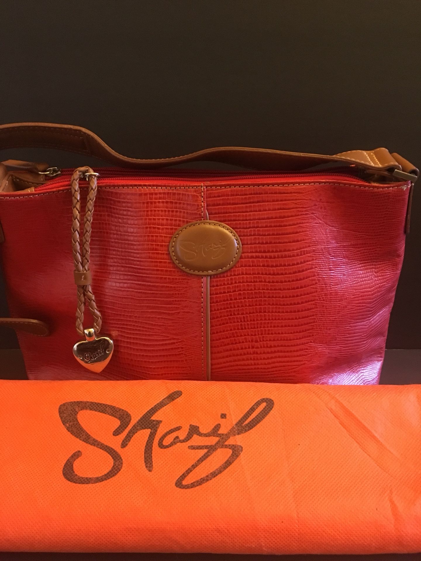 This item has been gently used. It has a heart key fob accessory. There is a zipper pocket on the back of the exterior. The interior has 1 zipper pocket and 2 slip pockets. Sliver hardware. Great statement Purse or everyday wear Purse.