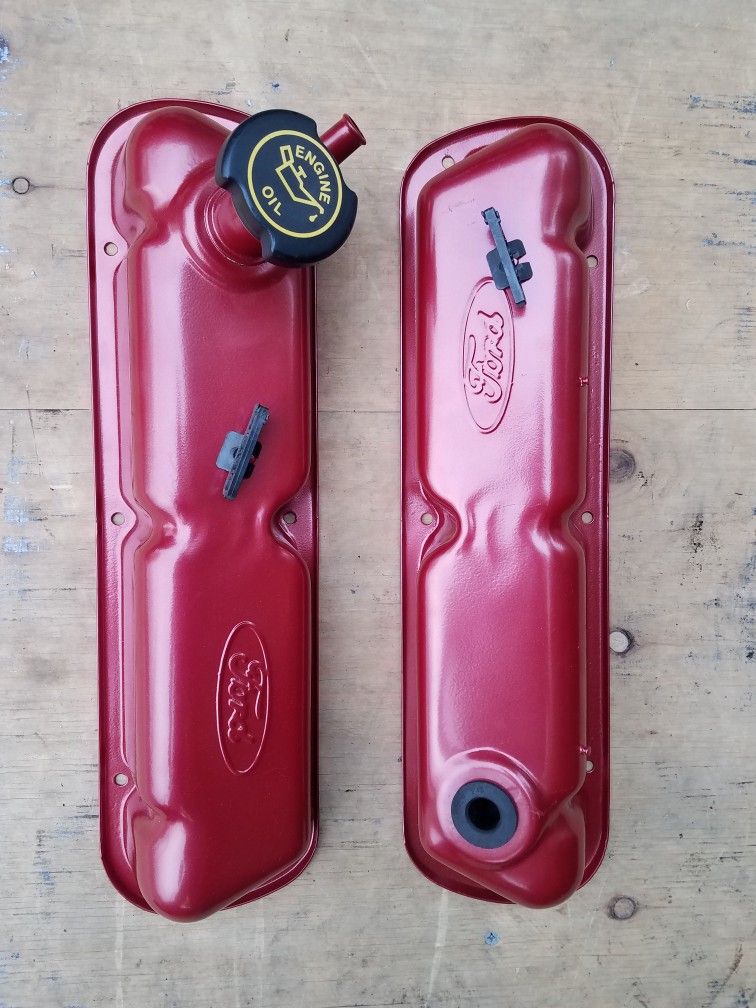 POWDER-COATED Ford Valve Covers for 5.8L 351 or 5.0L 302 engine for Bronco, standard cab, extended cab, and crewcab Ford trucks F-150, F-250, F-350 pickups. $200. Came from 1996 engine with 134k miles. Will fit 5.8L 351 or 5.0L 302 engine of years 1997, 1996, 1995, 1994, 1993, 1992, Bronco, F150, F250, F350 or econoline van and may fit years 1991, 1990, 1989, 1988, 1987.