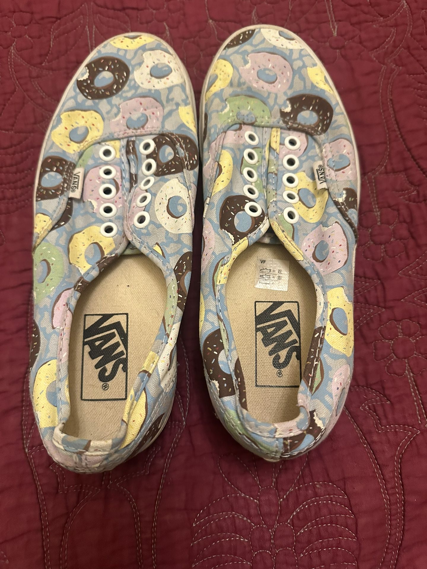 RARE🔥 VANS Authentic Donuts Munchies Sprinkles Shoes Sz 8 Women’s Donut design Missing shoe strings Great condition Fun shoe Asking $30 exact cash Local pick up -Redlands, Ca.