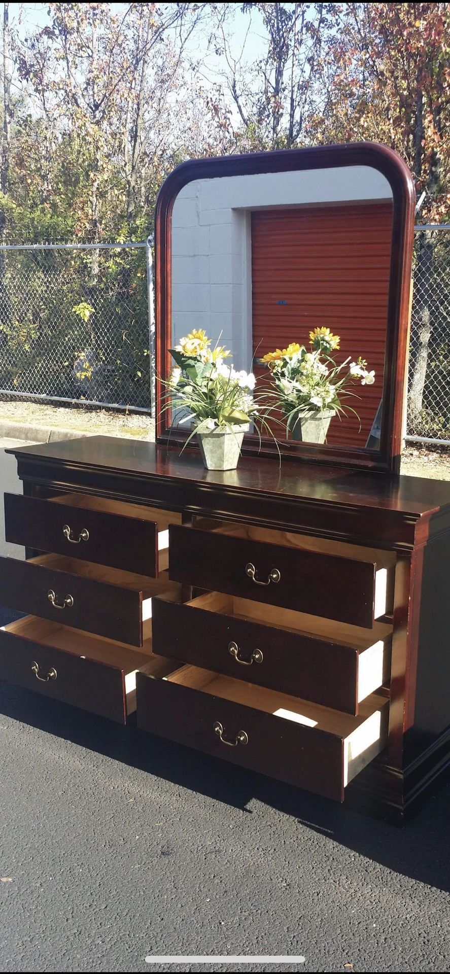 Solid Wood Long Dresser With Big Drawers, Big Mirror. Drawers Sliding Smoothly. Delivery Available