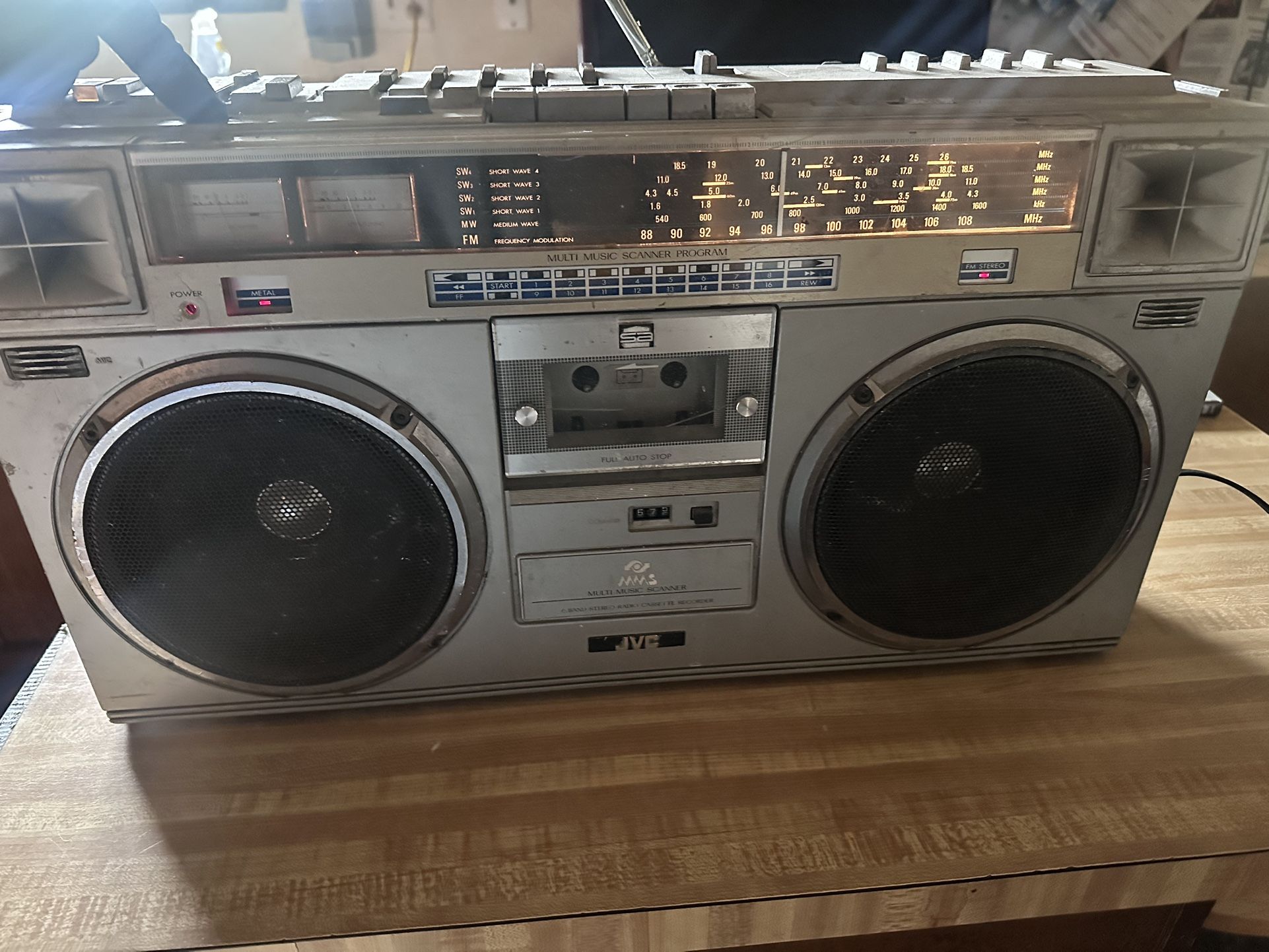 “OldschooL” JVC RC-M70JW 40w Boombox!! Please look at the pictures carefully, it shows all the blemish, it’s not perfect but it works… Tape player does not work (needs belt). Radio FM/AM works fine only!! Volume is finicky. Both speaker works except the right side goes off & on depending on the volume…. It plays loud & clear! Asking: $160 Good radio if you’re looking for parts or restoration or just play and listen to the radio!! Pick-up Location: Tacoma/Mount Lake Terrace.. Thanks for looking.,,