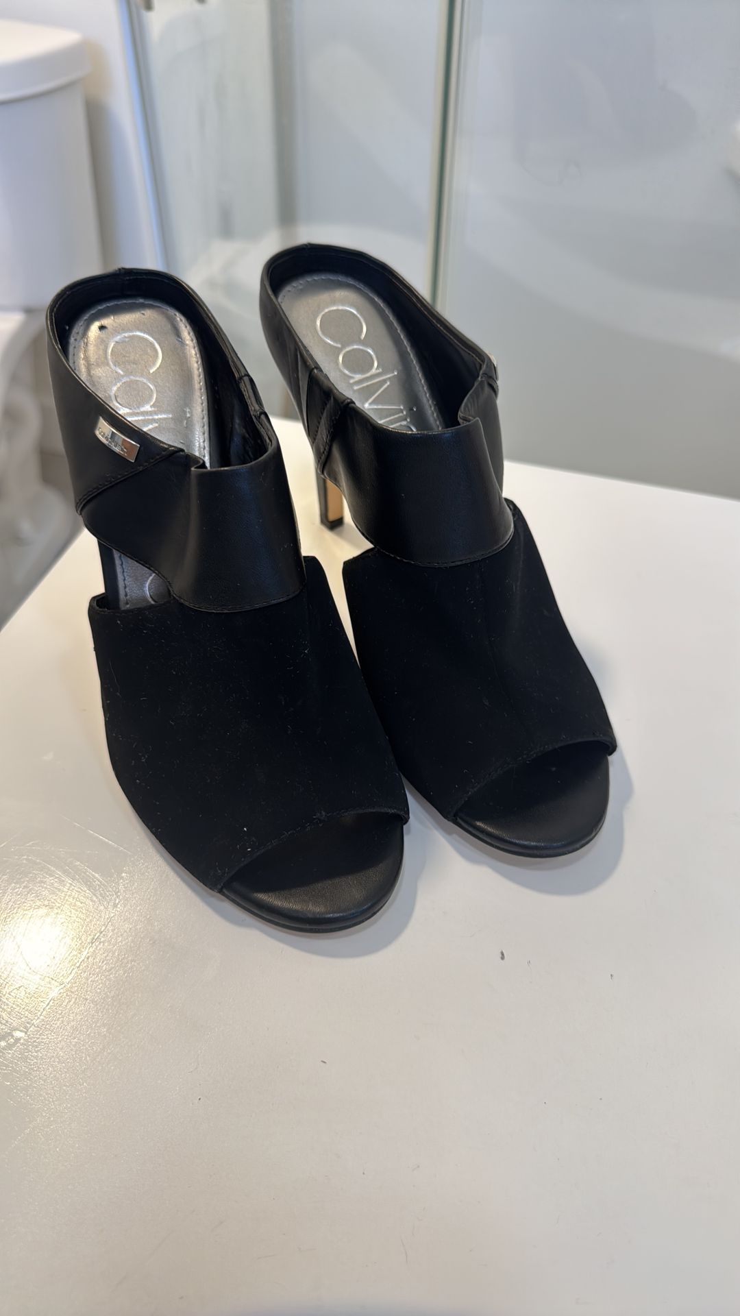 CALVIN KLEIM SATCHET BLACK HEELS