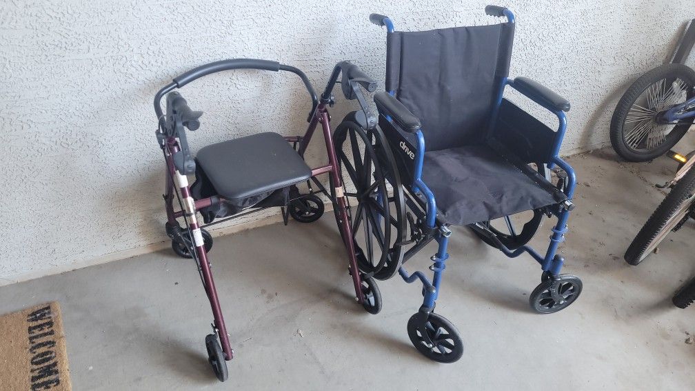 Wheelchair and walker both minimal cosmetic flaws Both functional Both work great 60 for both