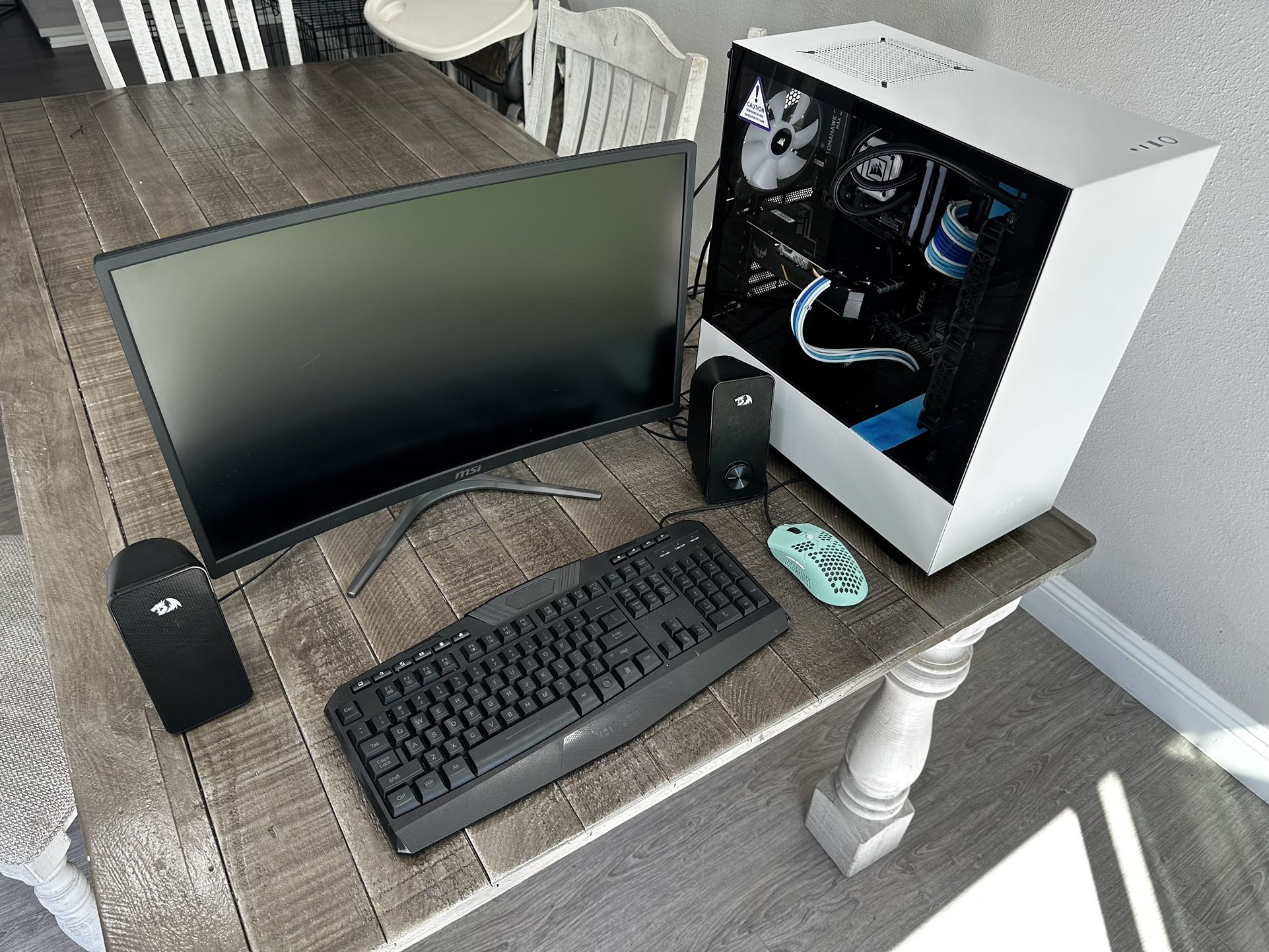 Great PC Build with lots of RGB. Monitor is also included. As well as keyboard and mouse. Specs: CPU: Ryzen 7 5800x 8 Core GPU: Asus TUF gaming 1660 Ti Evo Ram: Corsair Vengeance 16GB 3200MHz Memory: 500GB EvoPlus The monitor is an MSi Curved 24 in. It has a scratch about an inch long but the monitor works perfectly fine. Don’t miss out!