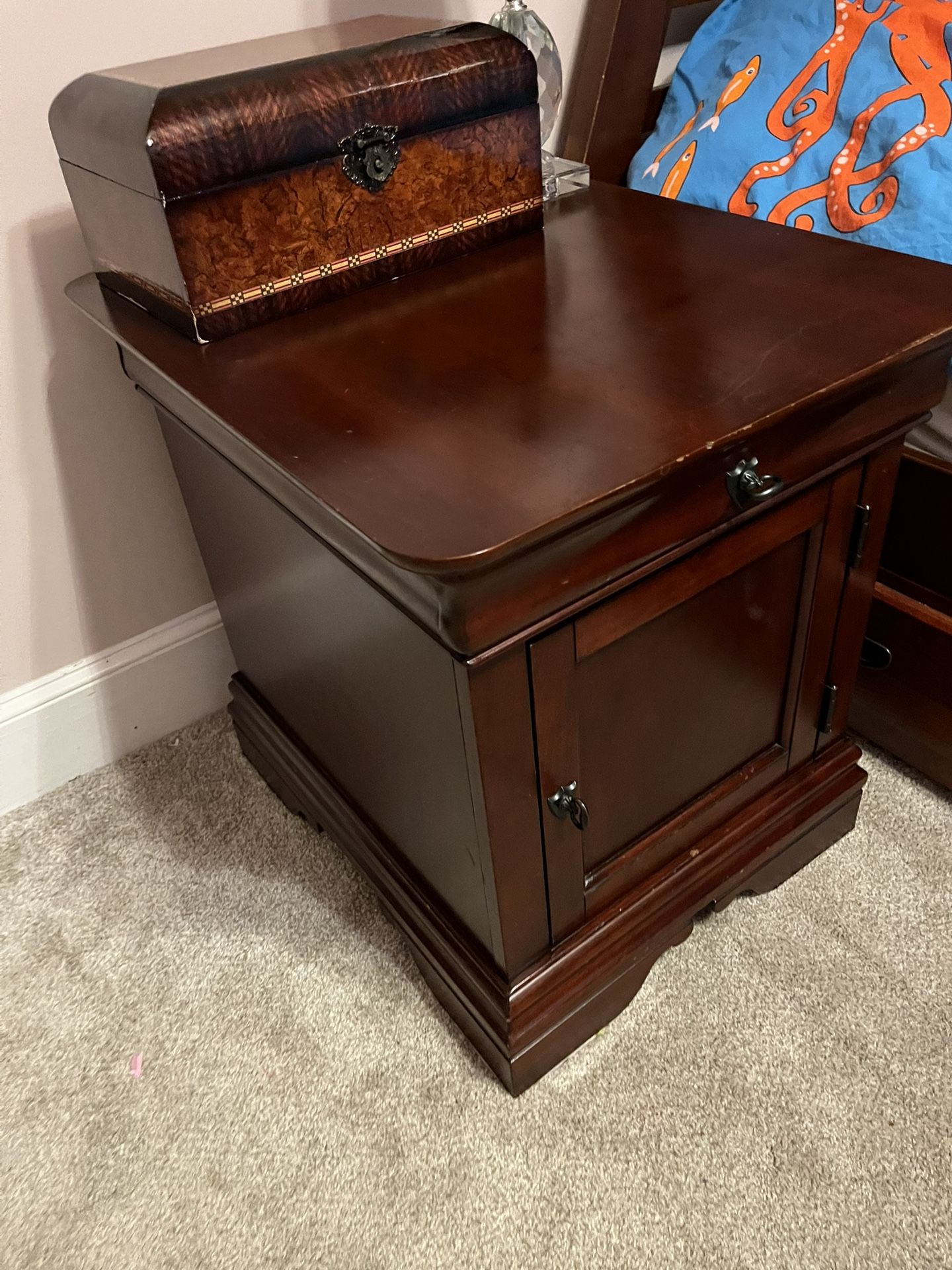 A spacious nightstand with a pocket at the back for magazines. Size: W 20 in x H 23 x D 24 in