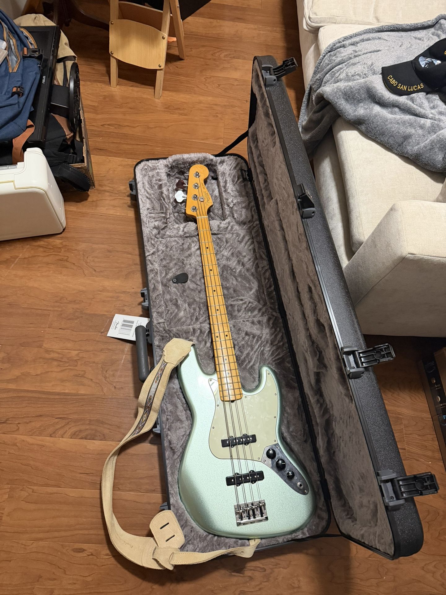 Mystic green Only played a handful of times I’m moving so can’t carry too many things Comes with fender case
