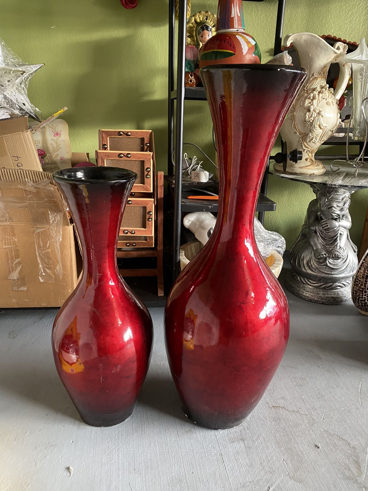 Bright red vases for decor Rainbow/ lake mead They’re new , o e oh them has a little chip