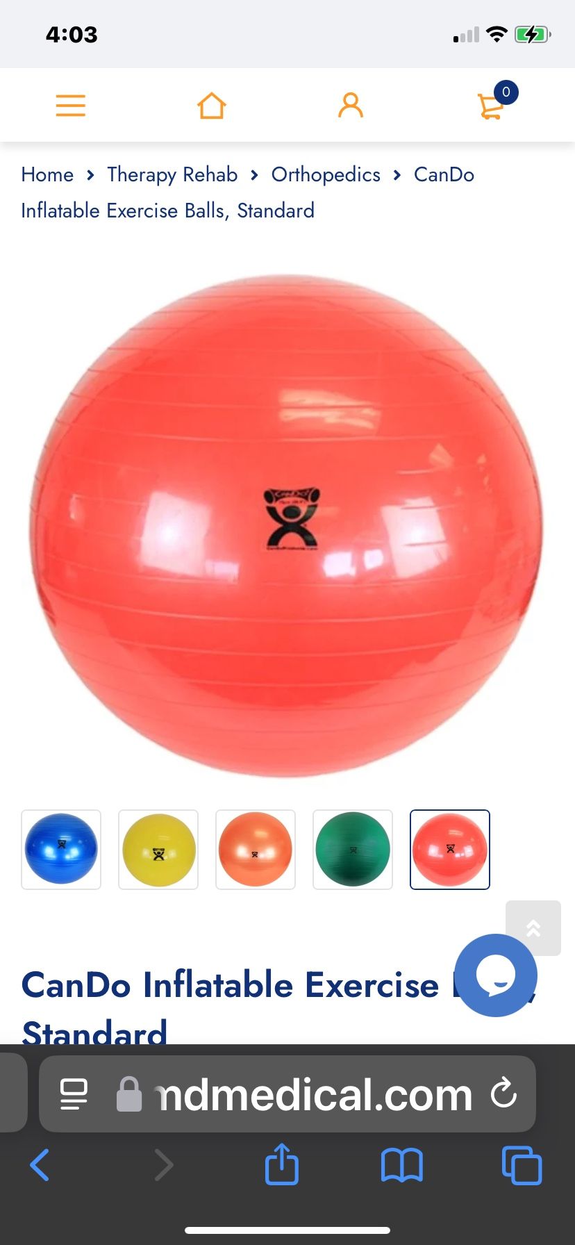 CanDo inflatable excercise ball standard. Please note- you MUST INFLATE. Standard ball 300 lb/136 kg. Color red. Size 29.5/75.
