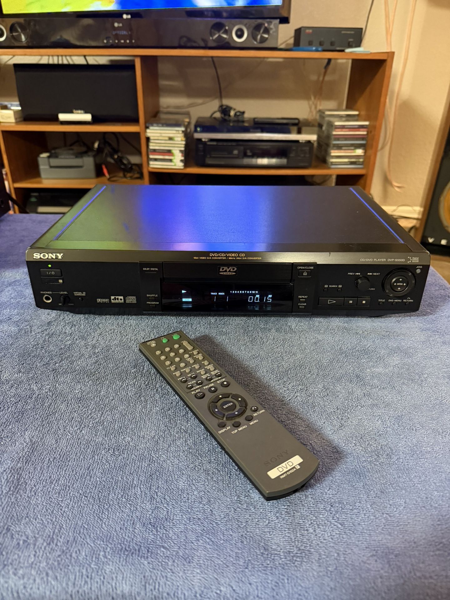 Description For sale is a classic, high-quality Sony DVP-S550D DVD/CD player. Known for its robust "Made in Japan" construction and excellent audio components, this is a great addition to any home audio setup. Key Features: * Plays DVD-Video, audio CD, and Video CD formats. * Built-in Dolby Digital decoder with 5.1-channel analog outputs for surround sound. * High-end 10-bit video D/A converter and 96kHz/24-bit audio D/A converter. * Front panel headphone jack with volume control. * Jog/shuttle dial for smooth scan/slow motion functions. Included Accessories: * original remote control is included Condition Details: * Fully tested and working properly. * Clean unit with minimal cosmetic wear.