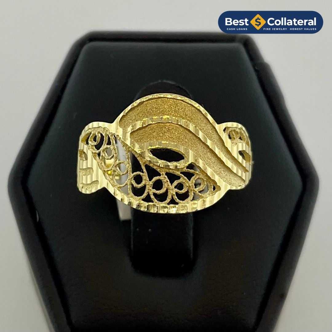 Available now! Ladies gold ring in 14k gold. In a size 8. Only $349.99