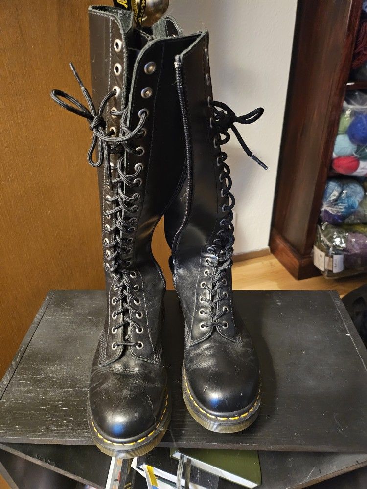 20-hole eyelets with zipper. Black leather. Women's US 8, EU 38. Great condition!