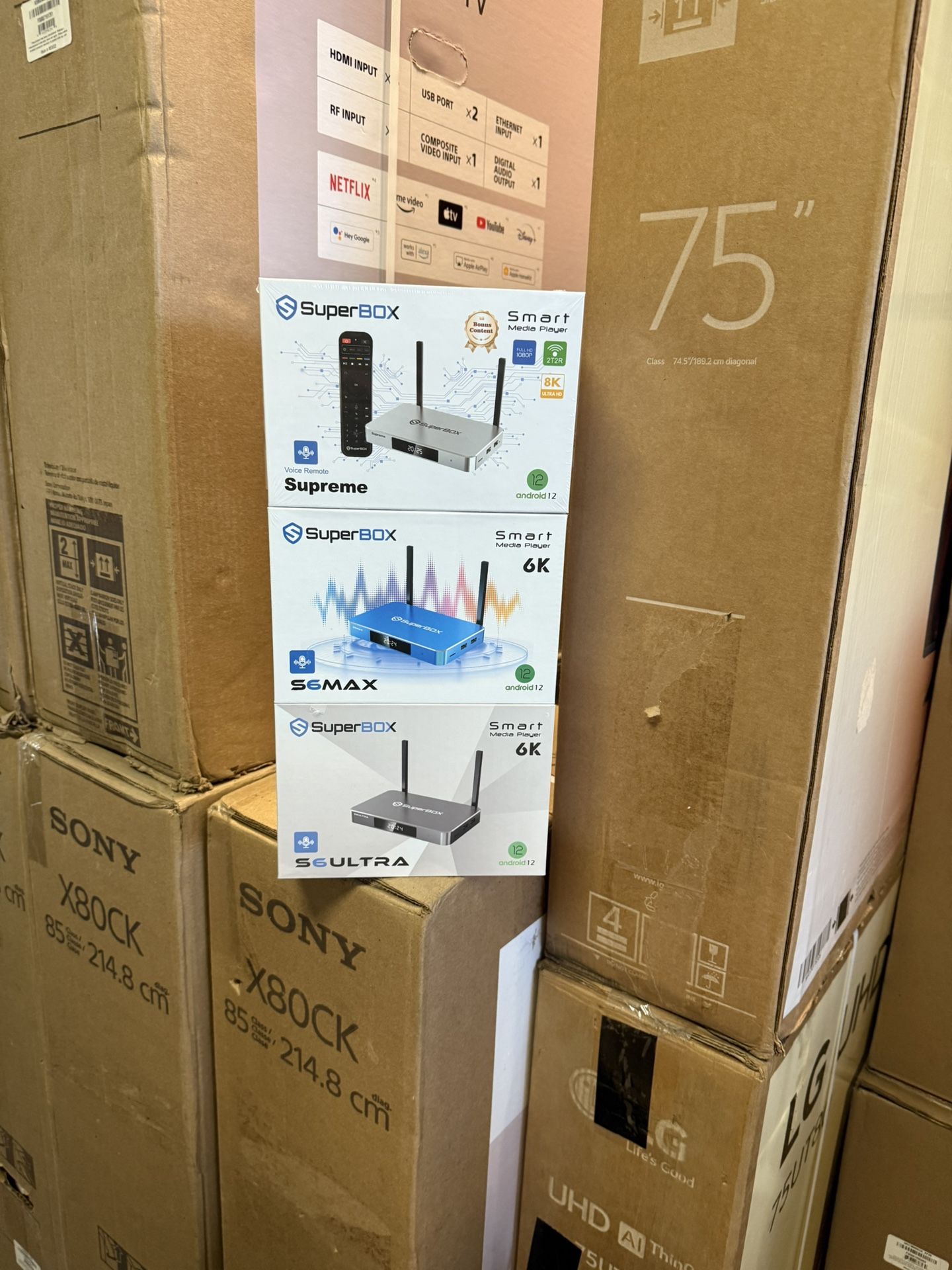 ‼️S6 PRO ‼️ 1 box $140 2-5 box’s $135 10 box’s $130 20 box’s $125 WHOLESALE $120 ‼️ S6 MAX ‼️ 1 BOX $170 2-5 $160 6 BOXES $150 10 boxes $145 20 boxes $140 WHOLESALE $135 ‼️ SUPERBOX SUPREME ‼️ RETAIL PRICE $429 ⭐️MESSAGE ME FOR WHOLESALE PRICE⭐️ ‼️ S6 ULTRA ‼️ 1 box $190 2+ $180 10-20 boxes $150 WHOLESALE PRICE $145 ⚡️VSEEBOX ELITE⚡️ 🙏🏼$300 Wholesale available ❗️LOCATIONS⚡️OPEN 12PM-7PM 📍 PASADENA - STORE 📍COVINA - STORE ❗️ONTARIO 📍 ONTARIO - pick up by appointment 📍 SAN BERNARDINO - by appointment 📍 TORRANCE CA - by appointment 📍 BAKERSFIELD CA- by appointment 🔥FREE SHIPPING ON CERTAIN ORDERS🔥 AUTHORIZED WHOLESALE DISTRIBUTORS - 1 YEAR WARRANTY - 24/7 TECH SUPPORT - BRAND NEW SEALED PRODUCT - FULLY LOADED SUPER BOX 👍🏼 ✅FINANCING AVAILABLE ✅ 100 DAYS ZERO INTEREST $0 DOWNPAYMENT $0 INTEREST 🔰APPLY TODAY🔰 🔥10 YEARS IN BUSINESS 🔥 DELIVERY AVAILABLE ⚡️ SHIPPING AVAILABLE ⚡️ OPEN 12-7 WHOLESALE ELECTRONICS TVS SUPERBOX FURNITURE ! SPEAKERS AND MUCH MORE !!