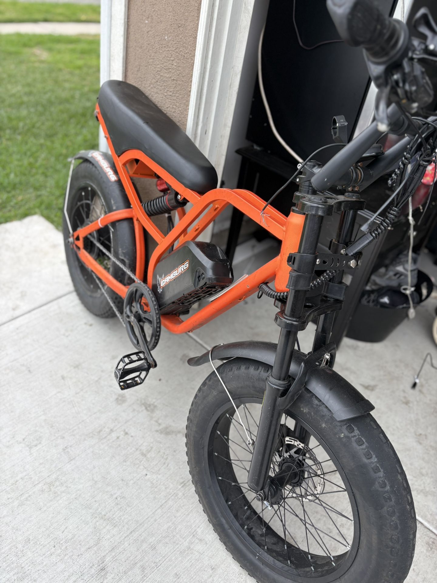 I need some fixing. The battery still works. The cranks are broken. The screen as well. You could fix it. The frame still Perfect. I’m selling it as or parts. The motor in the back works. Perfect. The wheels are great. I’m selling it as.