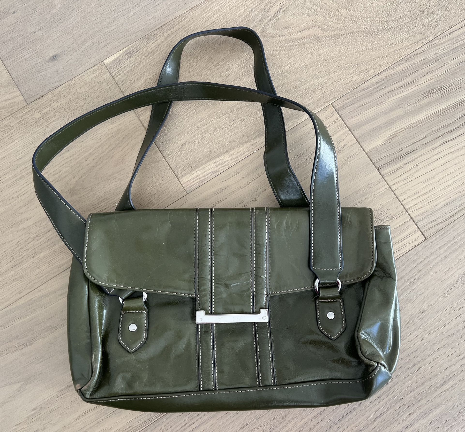 Genuine Leather Olive Green Purse by Apt9 ~12” x 7”, Handbag