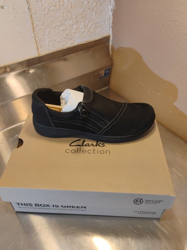 NEW IN BOX Clarks Collection Carleigh Ray Black Nuback / Nuback Noir / Slip-ons / Loafers Leather Size: 8 1/2M / 8.5M Color: Black / Nuback Black