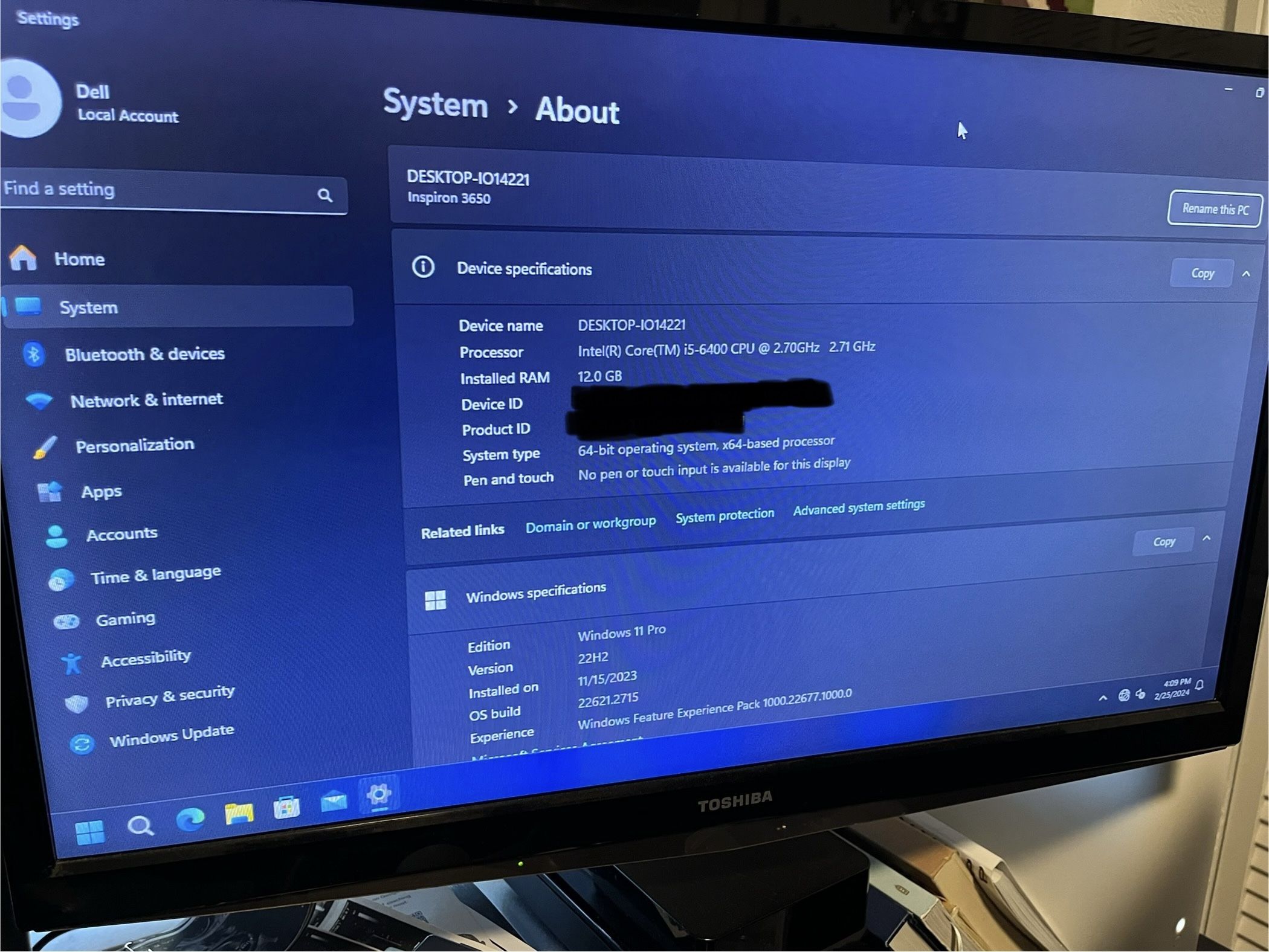 Low price for Dell Desktop Processor: Intel(R) Core(TM) i5-6400 CPU @ 2.70GHz 2.71 GHz Memory 12GB Storage 1TB Graphics: NVIDIA GeForce 8600 GT Operating System Windows 11 Pro