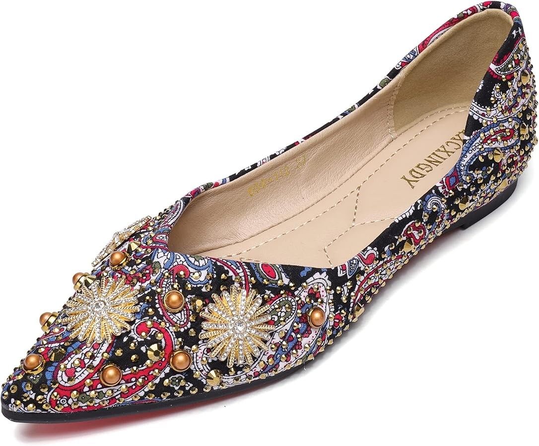 Flats for Women Pointed Toe Rhinestone Fashion Wedding Shoes Comfort Flat Shoes Work Casual Slip-On Dress Shoes