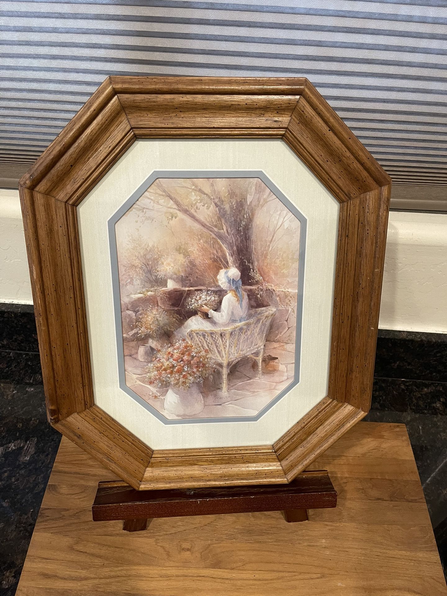 B. Torkland Woman Sitting In Bench Print Matted w/ Wood Frame Professionally framed