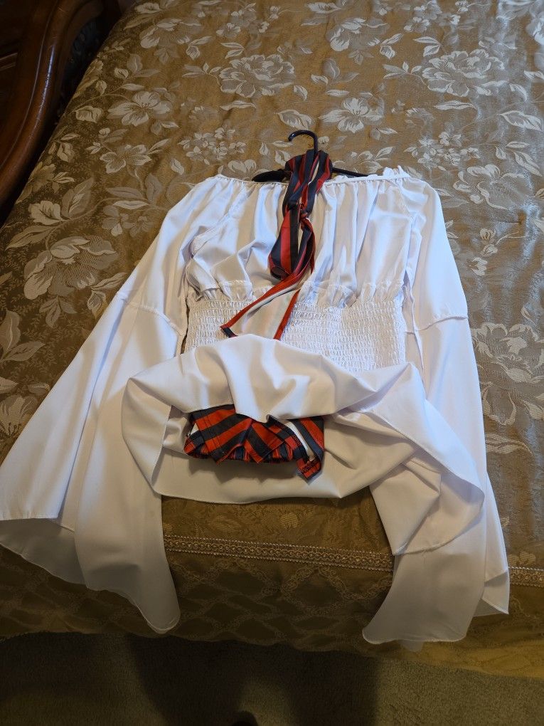 This is a ladies Pirite Halloween Costume, come with a blouse, skirt, eye patch, and belt.