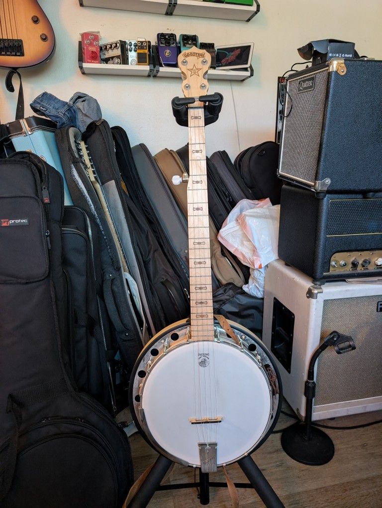 Deering Goodtime Two Resonator Banjo Still in excellent condition. It doesn't get played much as i have another banjo. Frets still in great shape, no noticeable fret wear. Some scratches on the back of the resonator. Nice low action. Comes with a shubb capo and nice thick padded Protec Gig bag. The tuners have been upgraded to Gotoh planetary gear tuner for a smoother traditional banjo tuning feel.