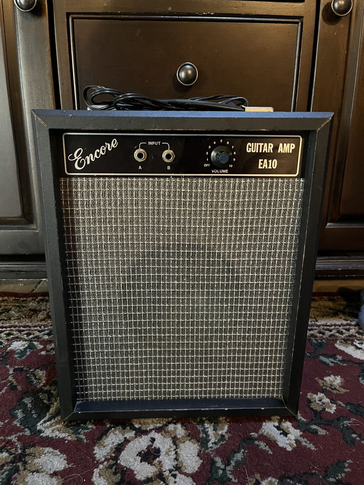 Encore EA10 guitar combo amp. Made in Korea in the Mid-70s. No major damage, some scuffs and scratches as seen. Electronics work as they should. Great sounding vintage amp and it's super lightweight. Local pickup in Ocoee, FL.
