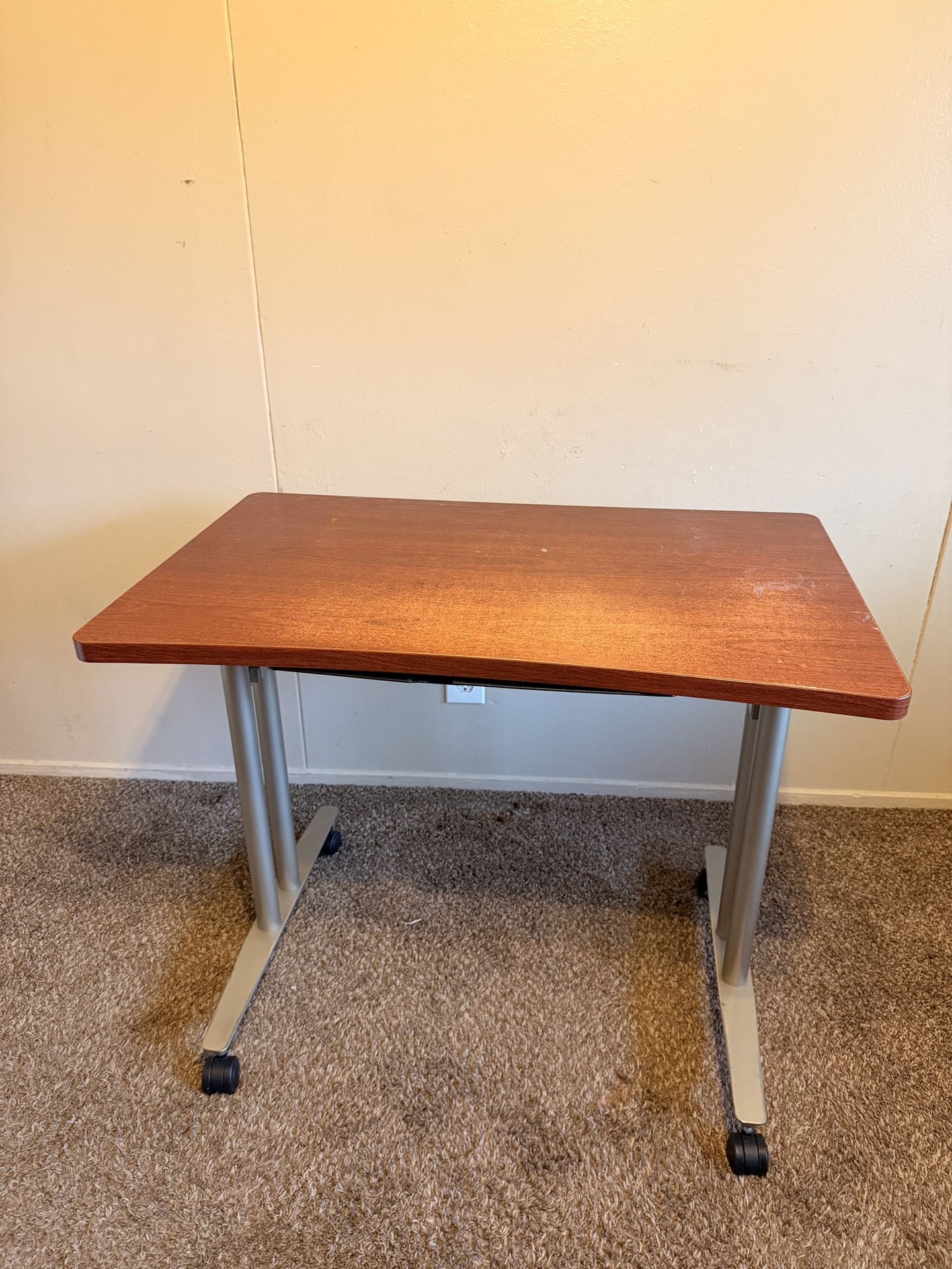 Adjustable maple wood grain desk Adjustable hieght from 28”-35” approximately - measurements in pictures