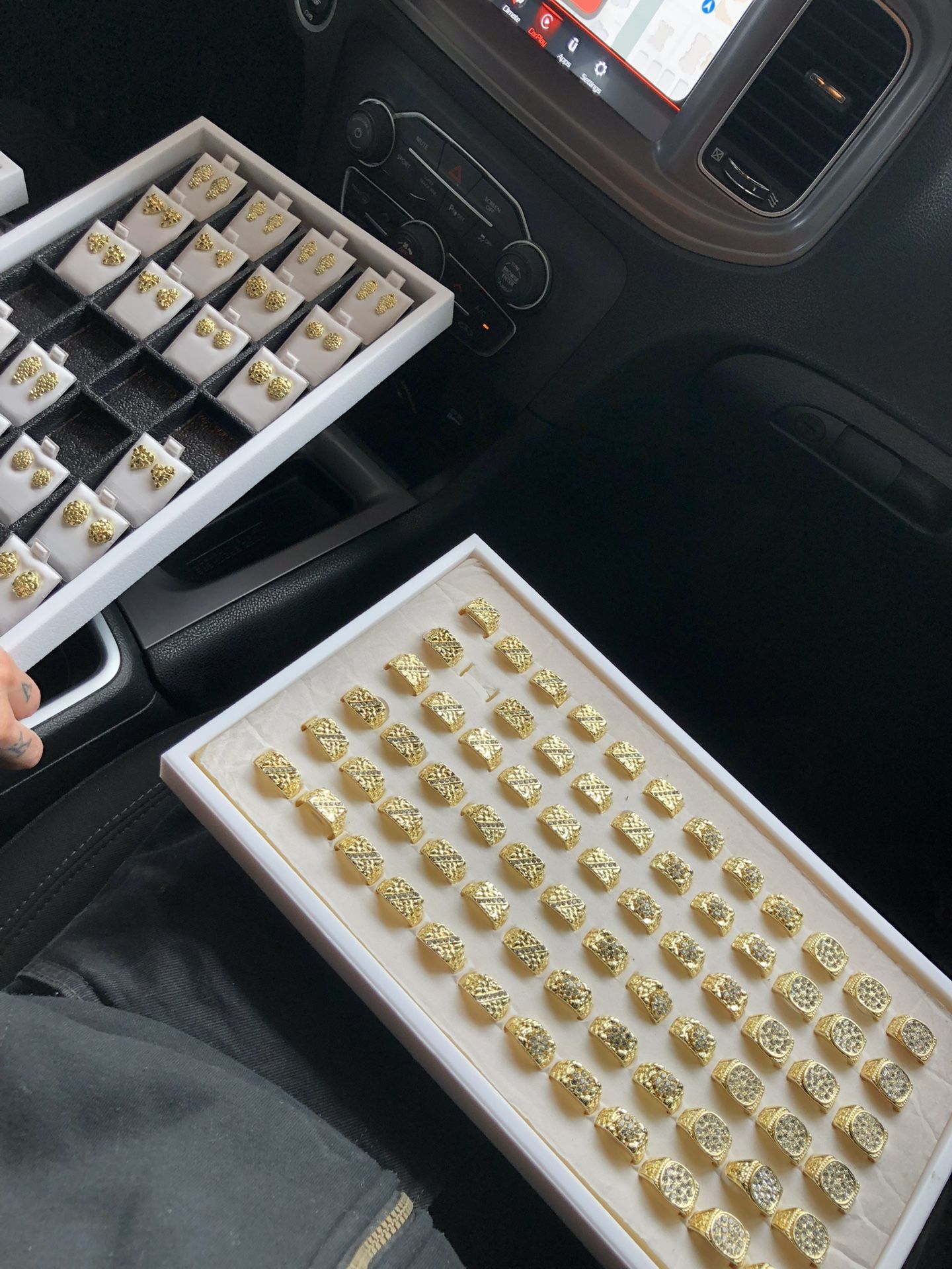 Gold plated stainless steel nugget earrings & nugget rings dm for any questions all new Size 7-12 Also got nugget earrings Dm for any questions and prices Can run deals on rings & earrings
