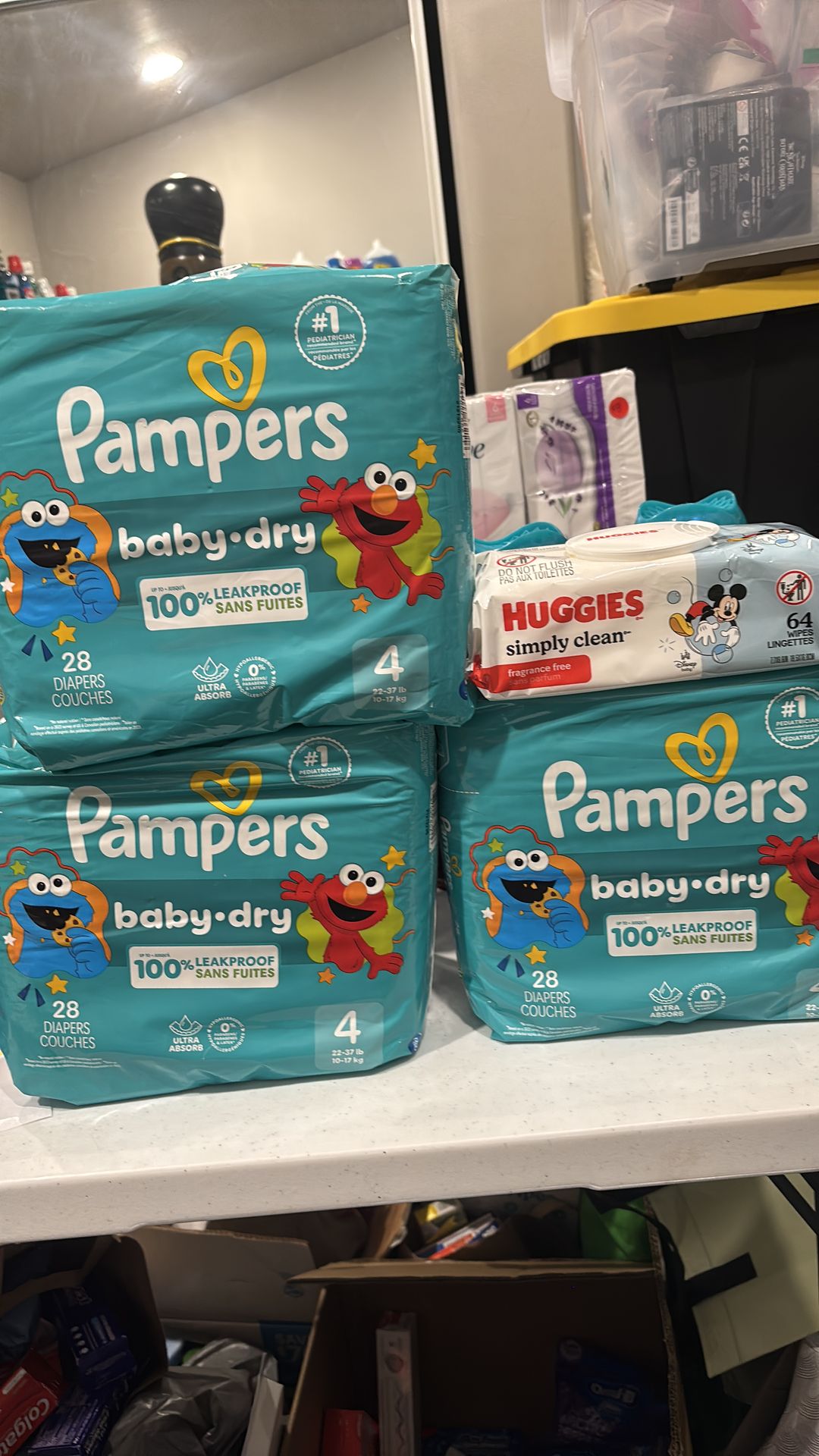 Size 4 pampers one pack wipes $24