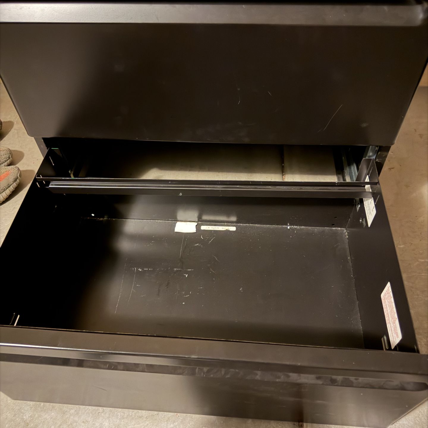 Metal cabinet is 26.5 inches tall x 19.75 inches deep x 29.5 inches wide