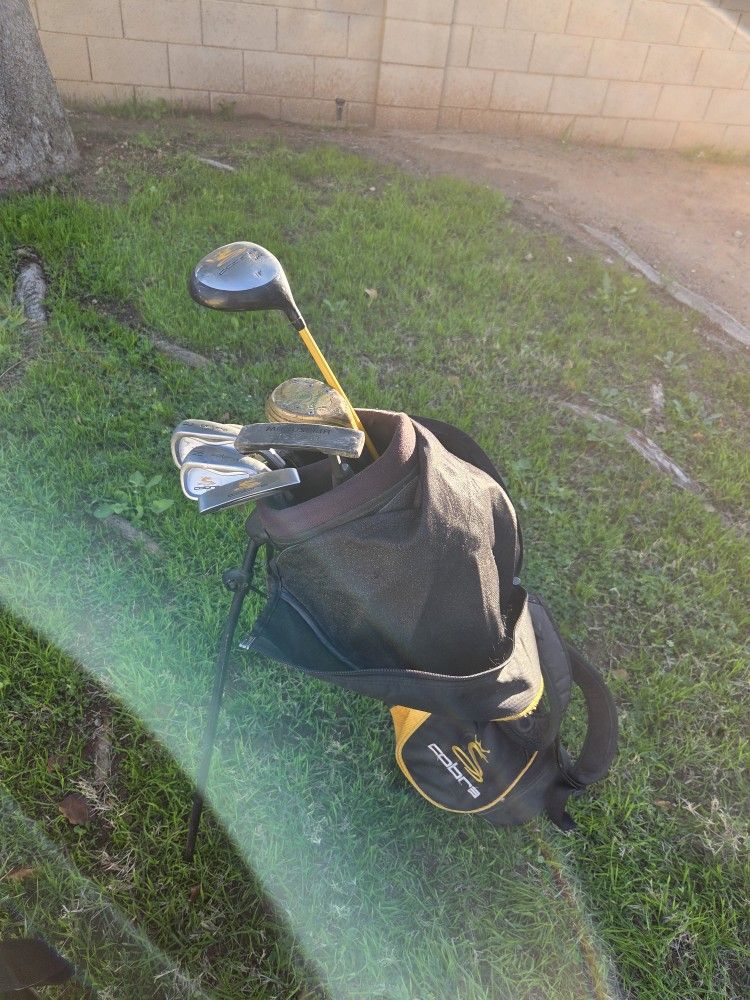 Set of 7 Jr. golf clubs with harness style bag Cobra - 5,7, W, Driver, Putter Spalding - Wood Driver Mitsushiba - Putter