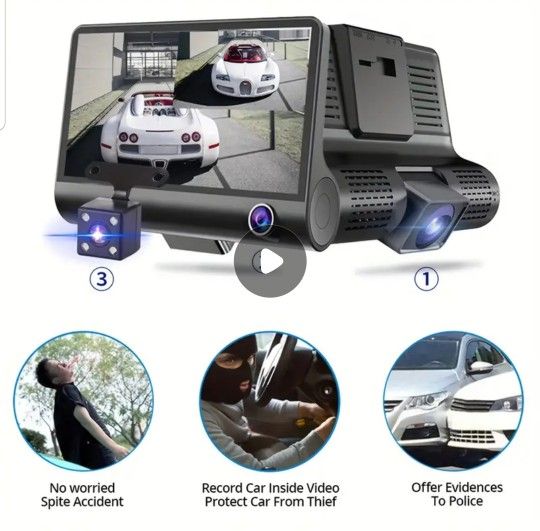 BRAND NEW IN THE BOX DASHCAM DVR....BIG 4"SCREEN w/3 CAMERA