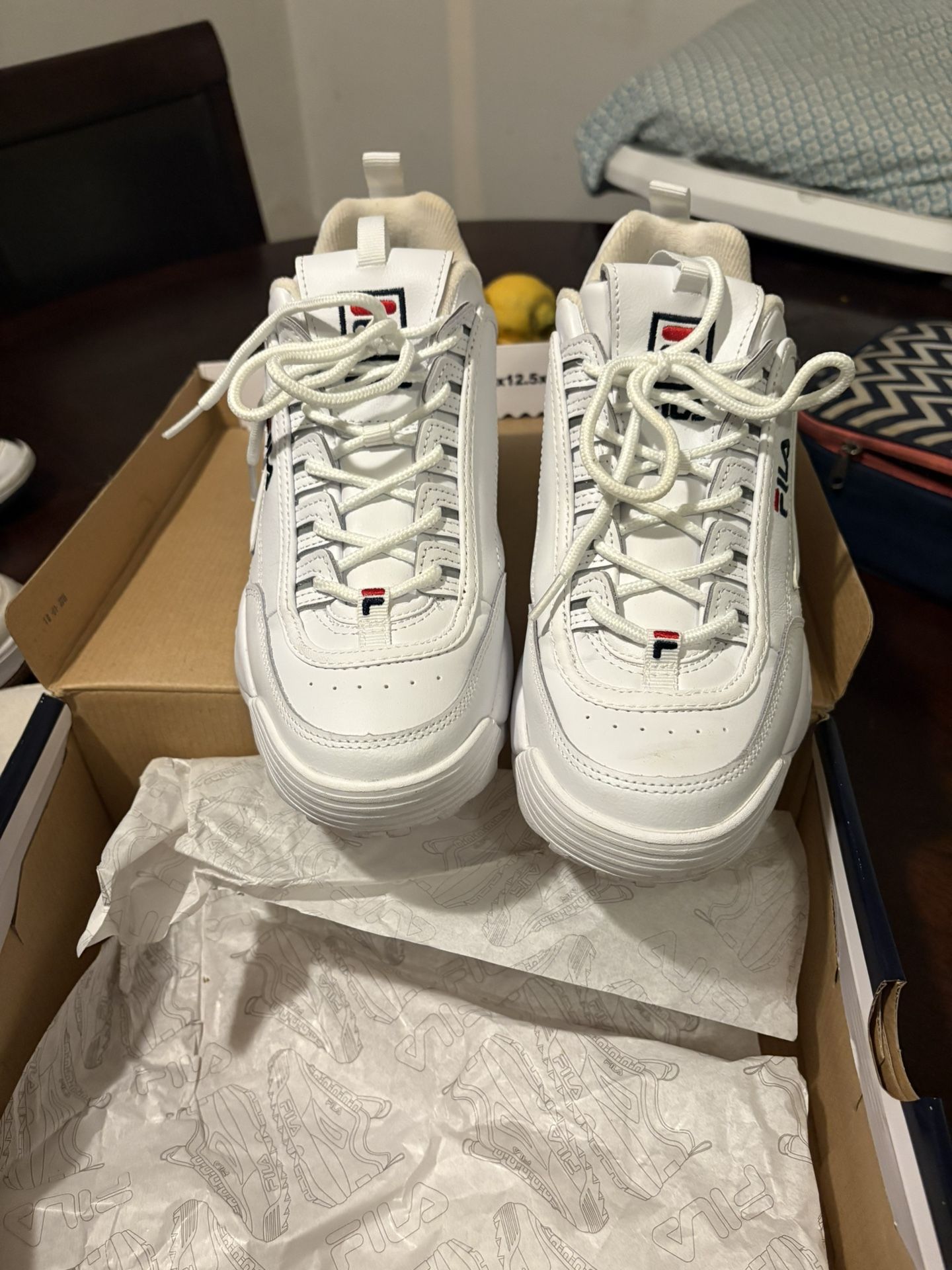 White Fila shoes brand new in the box. Size 10. Willing to negotiate.