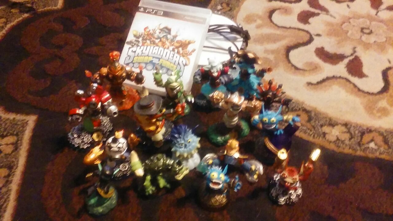 Ps3 sky Lander swap force game with 6 swap force chracters and 1 half can be swapped with other characters. and 6 original sky lander characters all can play on the swap force game. Portal included $50 obo