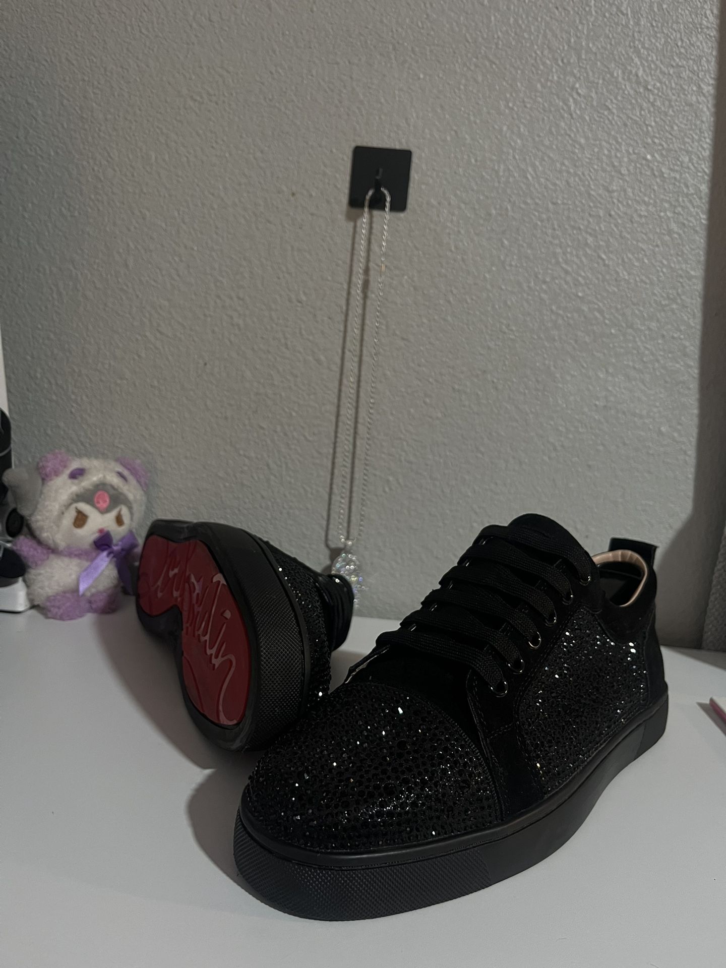 Louis Vuitton Low-Top Sneakers (Menβs 9,5) LV crystal low-tops in black. Suede + mix with full crystal detailing β crazy in person. Condition: Lightly worn, super clean. Retail: ~$1,200+ π Local pickup π° Cash/Zelle π« No trades DM if interested.