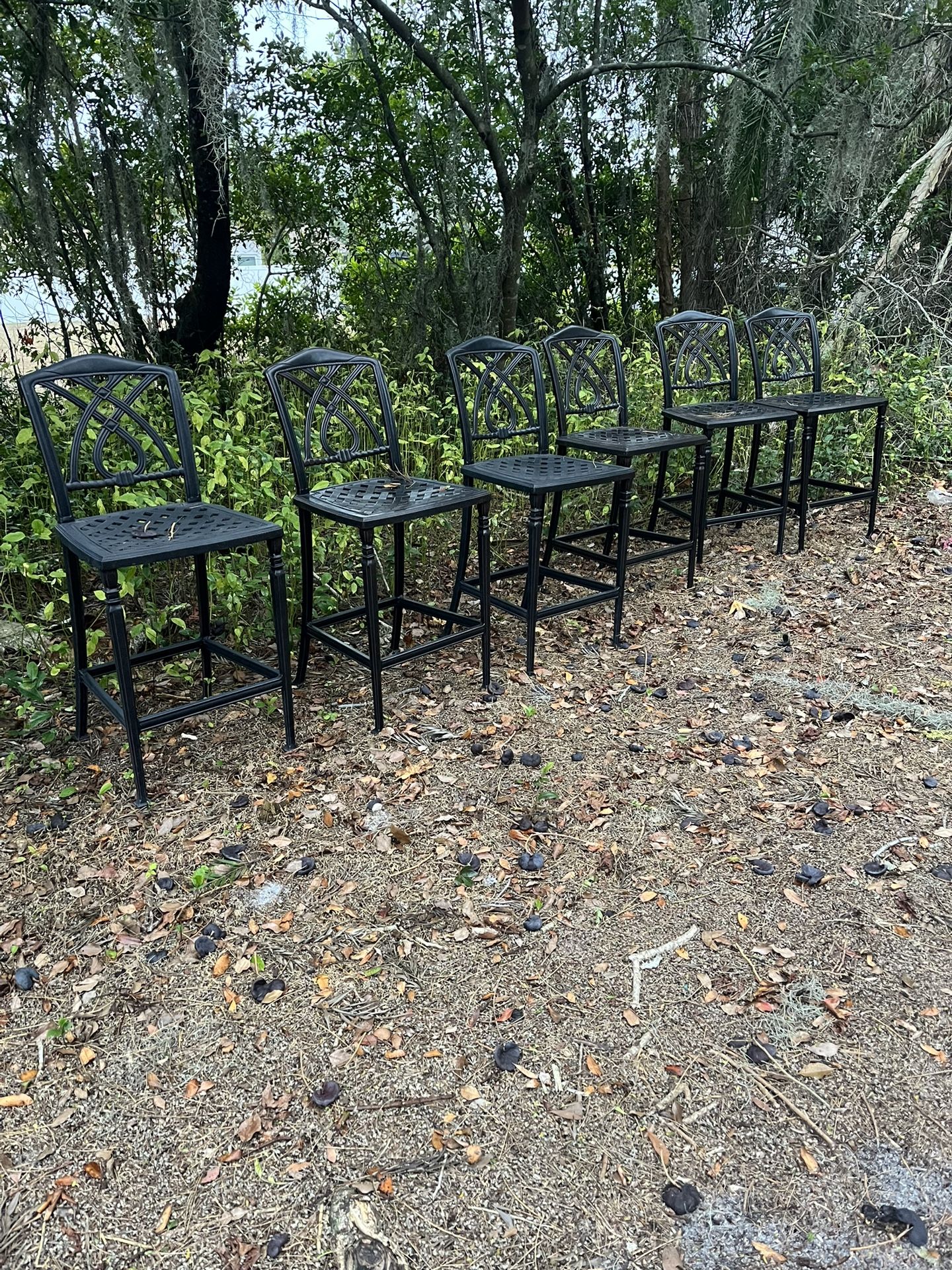 $25 each, OBO These are chairs for an outdoor high top table or outdoor bar. Sturdy and still look like new! Two of them are not as shiny on the seats, but still like new!