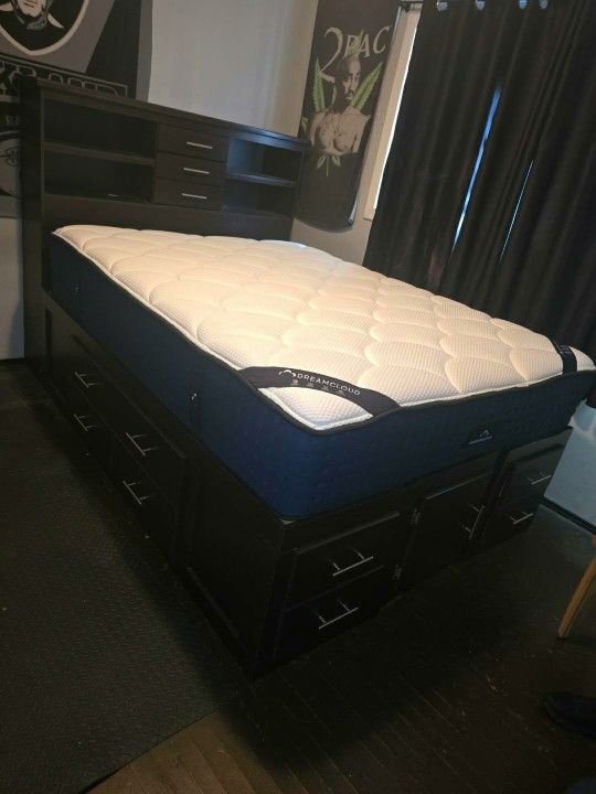 QUEEN BED MATTRESS AND FRAME 15 DRAWERS