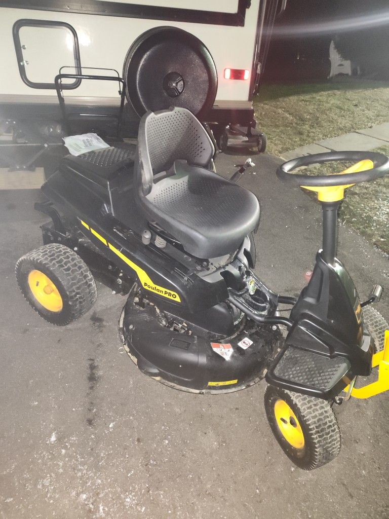 Has an electric start 10 1/2 horsepower Briggs & Stratton. The deck is set up for mulching or side discharge. This unit was only used one season it's in mint condition! They originally sold for $1,000! Free delivery within 20 mi of Feura Bush